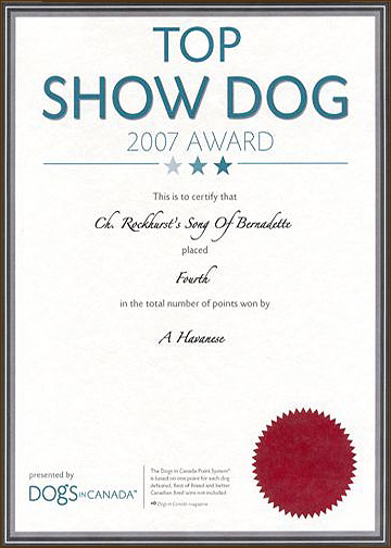 Specialty in 2007. She went on to be the #4 Havanese in Canada