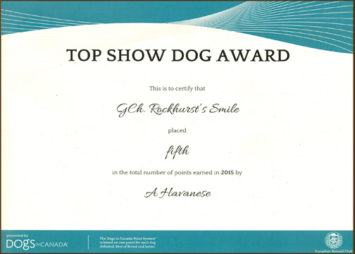 “Smile" Top Show Dog Award for 2015 |